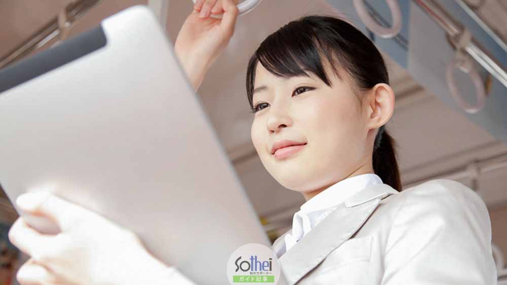 iPadで雑誌を見る女性
